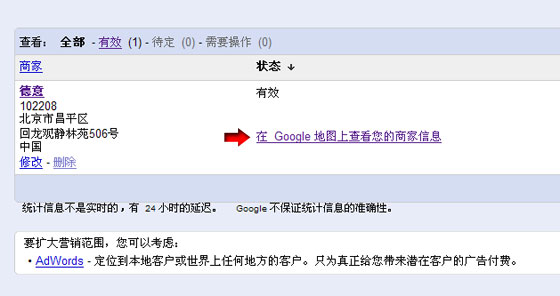 點擊下圖中紅色箭頭指示的“在 Google 地圖上查看您的商家信息” 鏈接。